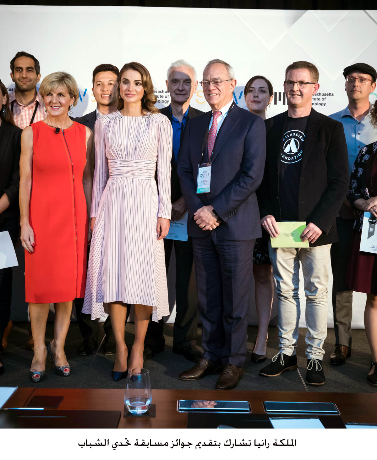 ضمن زيارة العمل التي يقوم بها جلالة الملك عبدالله الثاني إلى مدينة نيويورك الأميركية، شاركت جلالة الملكة رانيا العبدالله، امس، في نيويورك بتقديم جوائز الفائزين بنهائيات مسابقة Solve (الحل) التي أطلقها معهد ماساتشوستس للتكنولوجيا (MIT).
