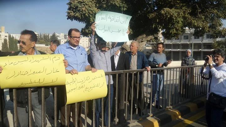 شارك العشرات في وقفة احتجاجية أمام مجلس النواب، عصر الاحد، رفضا لصفقة شراء الغاز الإسرائيلي، ولمطالبة المجلس بكشف تفاصيل الاتفاقية للرأي العام الأردني.