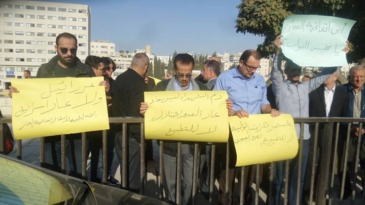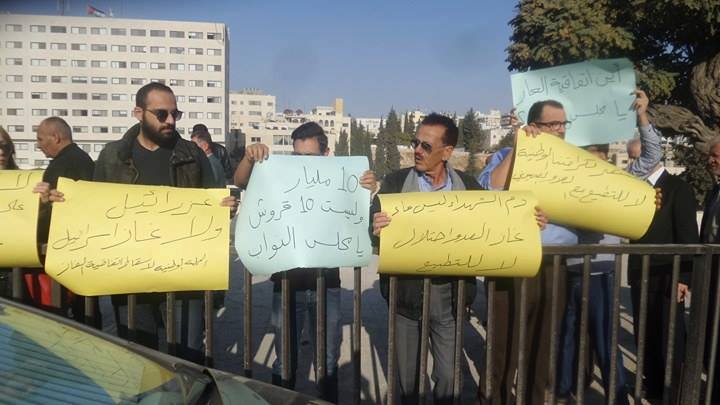 ودعا المشاركون في الوقفة ، مجلس النواب الى لعب دوره كحارس للبلاد ورقيب على مصالحه ، وعدم الصمت امام دفع10 مليار دولار من أموال الشعب الأردني للعدو وارهابه، بدلا من استثمارها داخل البلاد بما يفيد الاقتصاد ويفور فرص العمل للشباب.