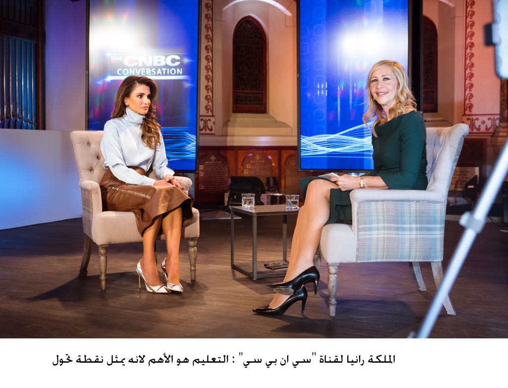 وكانت جلالة الملكة شاركت في عدد من جلسات المنتدى الاقتصادي العالمي واجرت عدداً من المقابلات مع شبكات التلفزة الامريكية مثل "سي ان ان" و"فوكس نيوز".