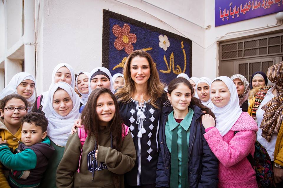 اطلعت جلالة الملكة رانيا العبدالله على أساليب الإدارة التربوية والتدريس لعدد من المعلمات المستفيدات من برنامجي شبكات المدارس والقيادة التعليمية المنفذين من قبل أكاديمية الملكة رانيا لتدريب المعلمين في مدارس المملكة.