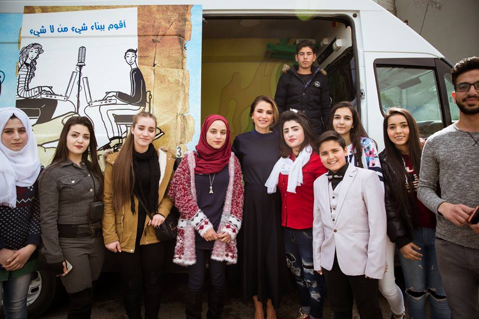 أطلقت جلالة الملكة رانيا العبدالله رئيسة مؤسسة نهر الأردن اليوم الثلاثاء في جاليري رأس العين المعرض المتنقل للتكنولوجيا المستجدة التابع لمشروع مختبرات الابتكار الاجتماعي الذي تنفذه مؤسسة نهر الأردن بالتعاون مع اليونيسف.
