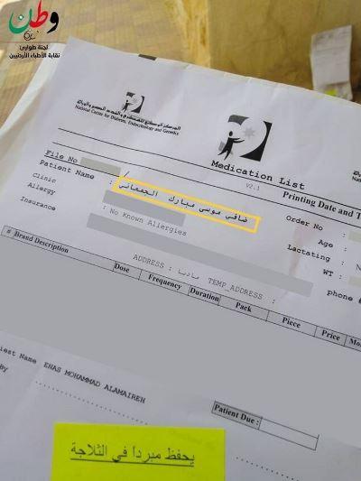 نشر رئيس لجنة الطوارئ "مبادرة وطن”، عضو مجلس نقابة الأطباء، الدكتور مظفر الجلامدة، الوصفة الطبية الأخيرة للمناضل الراحل ضافي الجمعاني والتي كان قد طلبها خلال فترة حظر التجوال في الأردن.