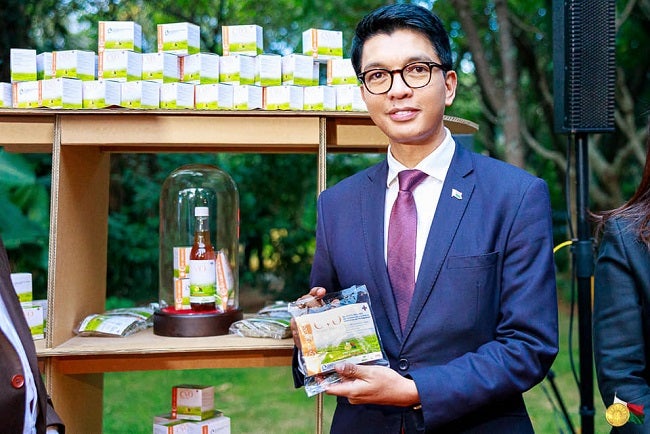رفع رئيس جمهورية مدغشقر "أندري راجولينا" الستار عن "شراب عشبي" صنع محليًا يُزعم أنه يشفي من فيروس "كورونا" المُستجد ويقي الأشخاص من الإصابة به.