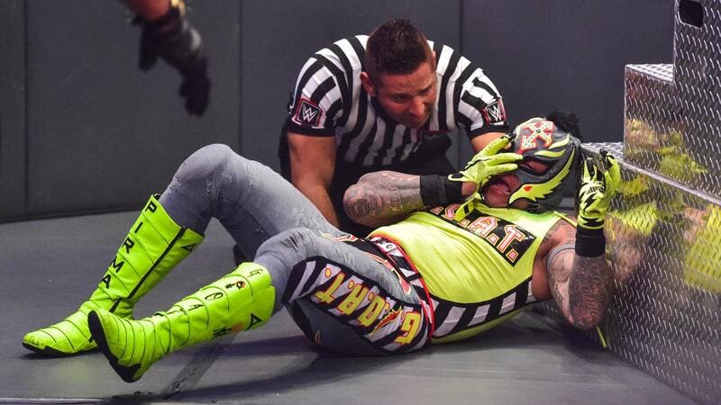 ووسط تنديد واستياء روّاد مواقع التواصل الاجتماعي ووسائل الإعلام حول العالم، قام "رولينز" بهجوم غير قانوني على "ميستريو" من خلال الضغط على عينيه عبر وضع رأسه على زاوية الدرج المعدني.