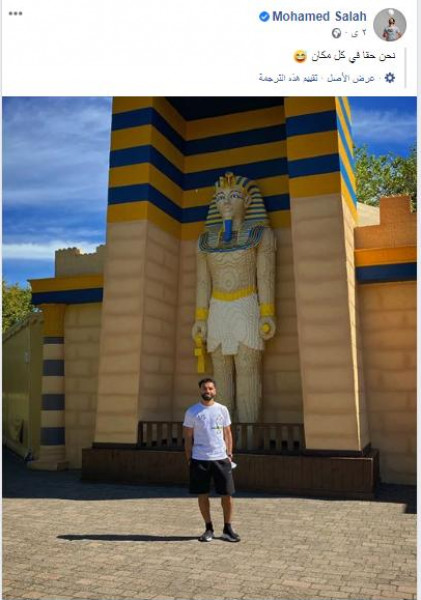 نشر النجم المصري محمد صلاح، جناح نادي ليفربول الإنجليزي، صورة جديدة على حسابه بموقع (فيسبوك)، يظهر خلالها أمام أحد نماذج التماثيل الفرعونية.