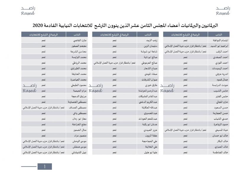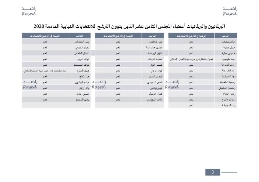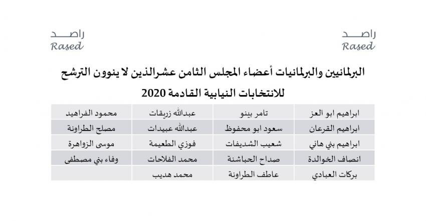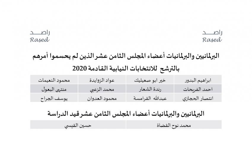 نفذّ مركز الحياة – راصد دراسة حول توجهات البرلمانيين والبرلمان أعضاء مجلس النواب الثامن عشر للانتخابات البرلمانية القادمة 2020، حيث تم التواصل مع أعضاء المجلس هاتفياً للتعرف على توجهاتهم، واستجاب للدراسة ما مجموعه 128 برلماني وبرلمانية، فيما بقي برلمانيان قيد الدراسة.
