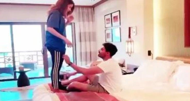 الصدمة الثانية كانت أنها شاركت فيديو وهي عارية برفقة زوجها داخل حوض الاستحمام وزجاجة المشروب كانت حاضرة أيضاً معهما.