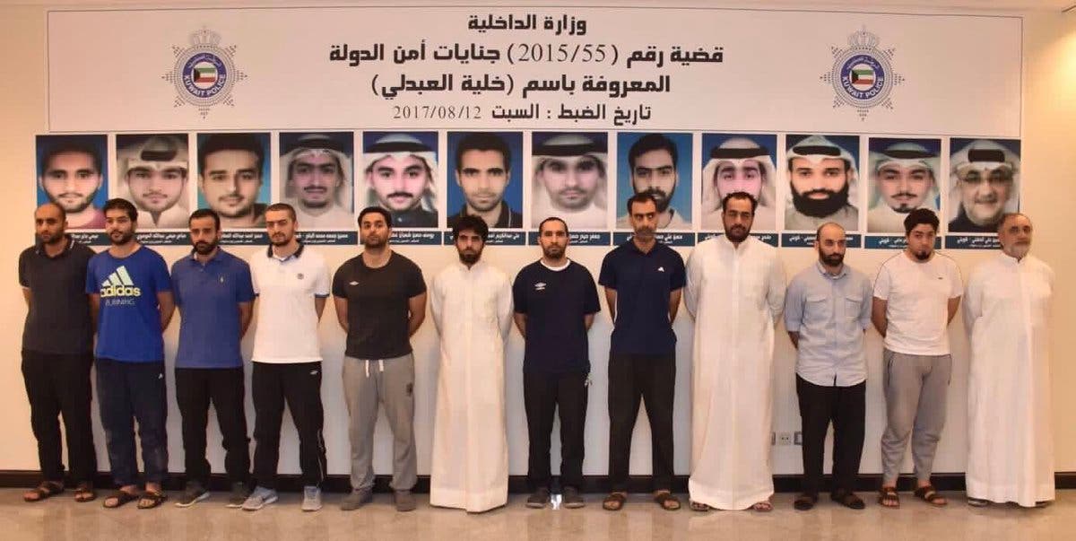 وفي 12 يناير 2016 قضت محكمة الجنايات الكويتية باعدام إيراني هارب وكويتي بتهم منها التخابر لصالح إيران وحزب الله اللبناني وحيازة متفجرات، كما قضت المحكمة أيضًا بمعاقبة متهم واحد بالمؤبد ومعاقبة آخرين بفترات سجن مختلفة بين خمس سنوات و15 سنة.