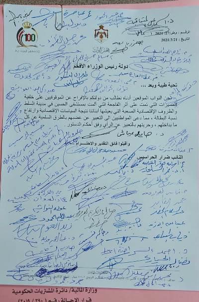 تقدم النائب ضرار الحراسيس بمذكر لرئيس الوزراء بشر الخصاونة بضرورة الإفراج عن جميع الموقوفين على خلفية الاحتجاجات السلمية التي تبعت حادثة مستشفى السلط.