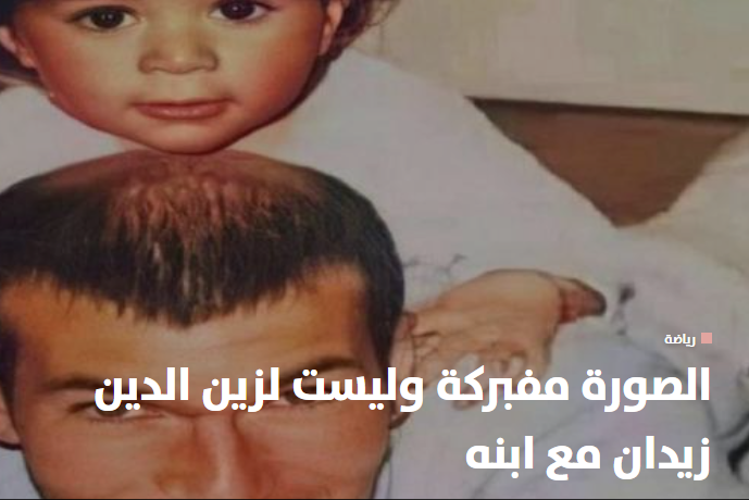 وانتشرت أيضًا صورةً ادعى ناشروها أنها تجمع المدرب ولاعب كرة القدم الفرنسي، زين الدين زيدان بابنه، الذي يشبه اللاعب الفرنسي كريم بنزيما في صغره. وعلّق بعض ناشري الخبر على الصورة بقولهم إنها تفسّر إبقاء زيدان على بنزيما في ريال مدريد، رغم ما يراه بعض مشجعي نادي ريال مدريد من مستويات منخفضة لبنزيما. ولكن تحقق "مسبار" بيّن أنّ الصورة مفبركة ومعدلة عبر أحد برامج تعديل الصور.