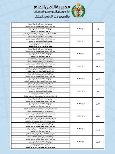 وقالت الإدارة إن ساعات الدوام للترخيص المتنقل ستكون من الثامنة صباحاً وحتى الساعة الثانية ظهراً.