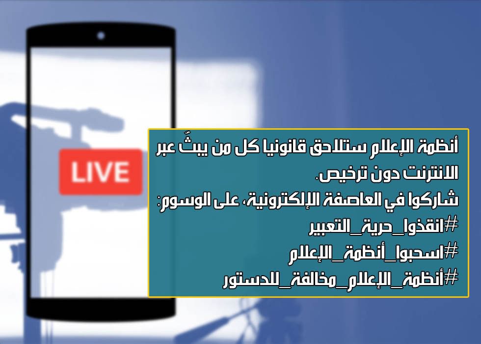 واستخدم المغرّدون وسوم: #انقذوا_حريه_التعبير و #اسحبوا_انظمه_الاعلام و #انظمه_الاعلام_مخالفه_للدستور ، حيث اكتسحت هذه الوسوم منصّات التواصل الاجتماعي وتصدّرت قائمة الأكثر تداولا.