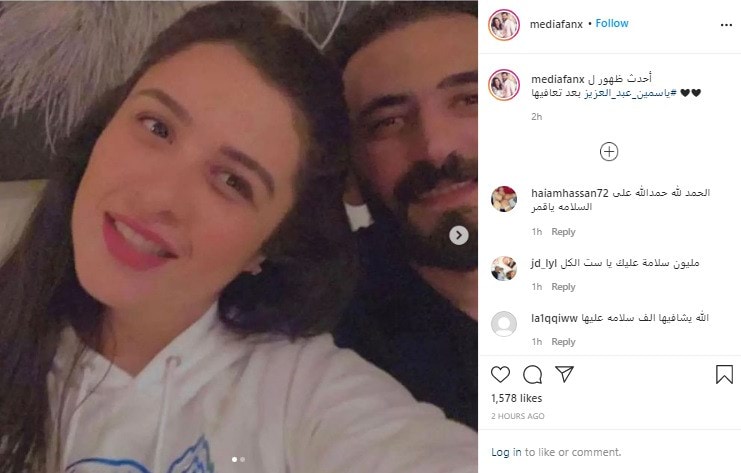 وكانت قد انتشرت بين رواد مواقع التواصل الاجتماعي وحسابات إخبارية صورتين للفنانة ياسمين، تظهر فيها برفقة زوجها الفنان أحمد العوضي وشقيقه إسلام العوضي، دون أن تضع أي نوع من مستحضرات التجميل.