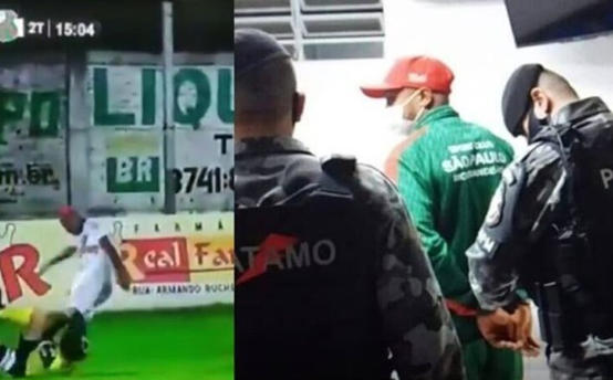 تم إعتقال اللاعب بأرضية الملعب وإحالته لمركز الشرطة بتهمة الشروع بالقتل بعد قيامه بركل الحكم على رأسه.