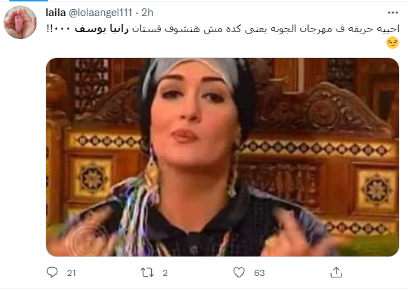 تصدر اسم الممثلة المصرية رانيا يوسف الترند عبر تطبيق تويتر في مصر من بعد الإعلان عن حريق كبير في إحدى صالات مهرجان الجونة.