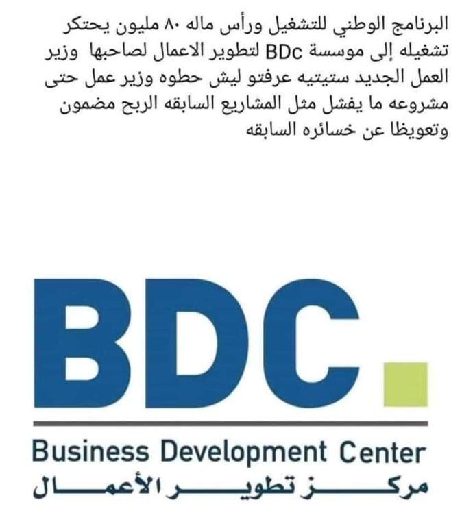 يقول رئيس غرفة تجارة عمان خليل الحاج توفيق في منشور له، ان البعض تداول منشور “لا يعرف من كتبه او صاحبه الاصلي” بخصوص برنامج التشغيل الوطني وانه سيتم احتكار البرنامج لصالح مركز تطوير الاعمال BDC والذي تبلغ حجم الميزانية المرصودة لها ٨٠ مليون دينار بعد تعيين مدير عام المركز وزيرا للعمل في التعديل الاخير .