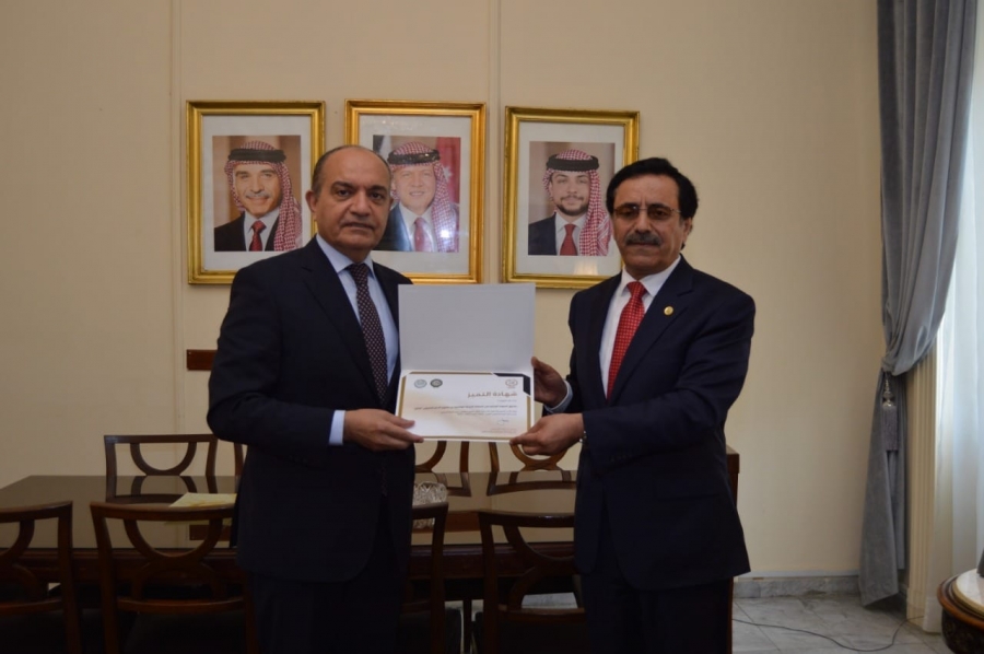 وقدّم الدكتور ناصر الهتلان القحطاني المدير العام للمنظمة العربية للتنمية الإدارية، التابعة لجامعة الدول العربية، الدروع والشهادات للسفير العضايلة في مقر السفارة الأردنية في القاهرة، مثنياً على حالة التميّز التي عكسها التطوّر والتأهيل المتقدم في الموارد البشرية والحكومية في الأردن.