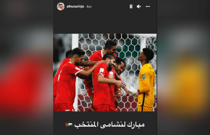 هنأ ولي العهد سمو الامير الحسين بن عبدالله الثاني المنتخب الاردني لكرة القدم بعد فوزه اليوم على المنتخب السعودي في اولى مبارياته في بطولة كأس العرب بهدف نظيف.