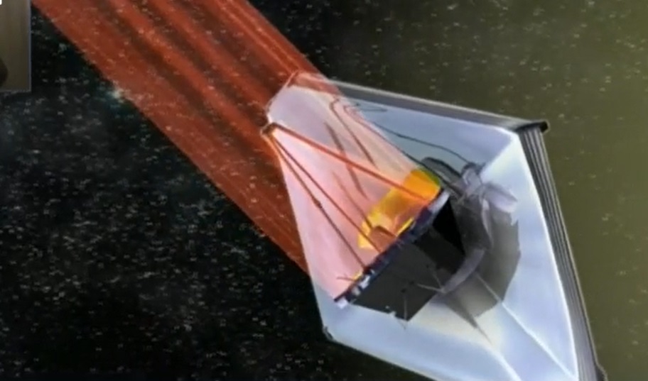 وكانت أجزاء المرآة مطوية بما يسمح بوضعها في مكان تخزينها على متن الصاروخ الذي أطلق التلسكوب إلى الفضاء.