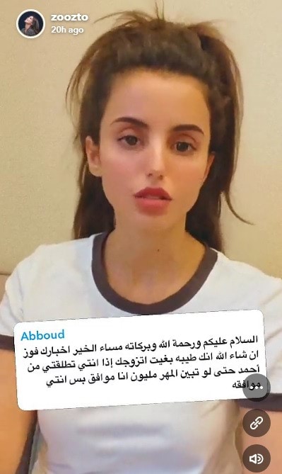 نشرت مشهورة مواقع التواصل الاجتماعي السعودية فوز العتيبي طلبا لأحد متابعيها، عرض من خلاله الزواج عليها مقابل مبلغ مليون ريال (نحو 270 ألف دولار).