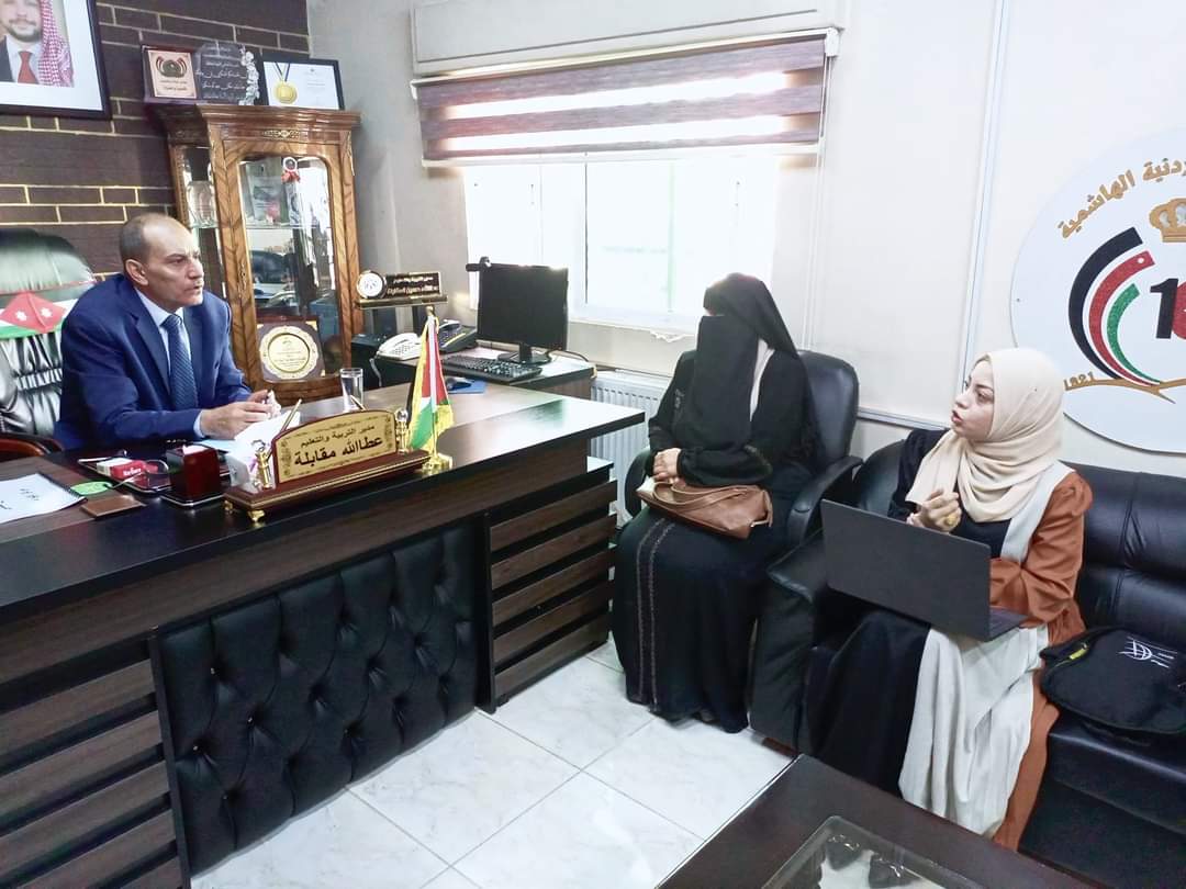 استقبل مدير التربية والتعليم للواء سحاب الأستاذ عطاالله حسين المقابلة ورئيس قسم التعليم العام وشؤون الطلبة السيدة عالية ابوحماد مديرة مدرسة المعمورة الأساسية للبنات السيدة جميلة الموسى والمعلمة نور الحسن وبحضور المسؤول الإعلامي في المديرية الدكتورة مريم ابوزيد للحديث حول برنامج الانتخابات البرلماني الطلابي الالكتروني والذي طبق للمرة الأولى في مدرسة المعمورة الأساسية للبنات في مديرية لواء سحاب عام ٢٠١٩ وكان الأول على مستوى المملكة.