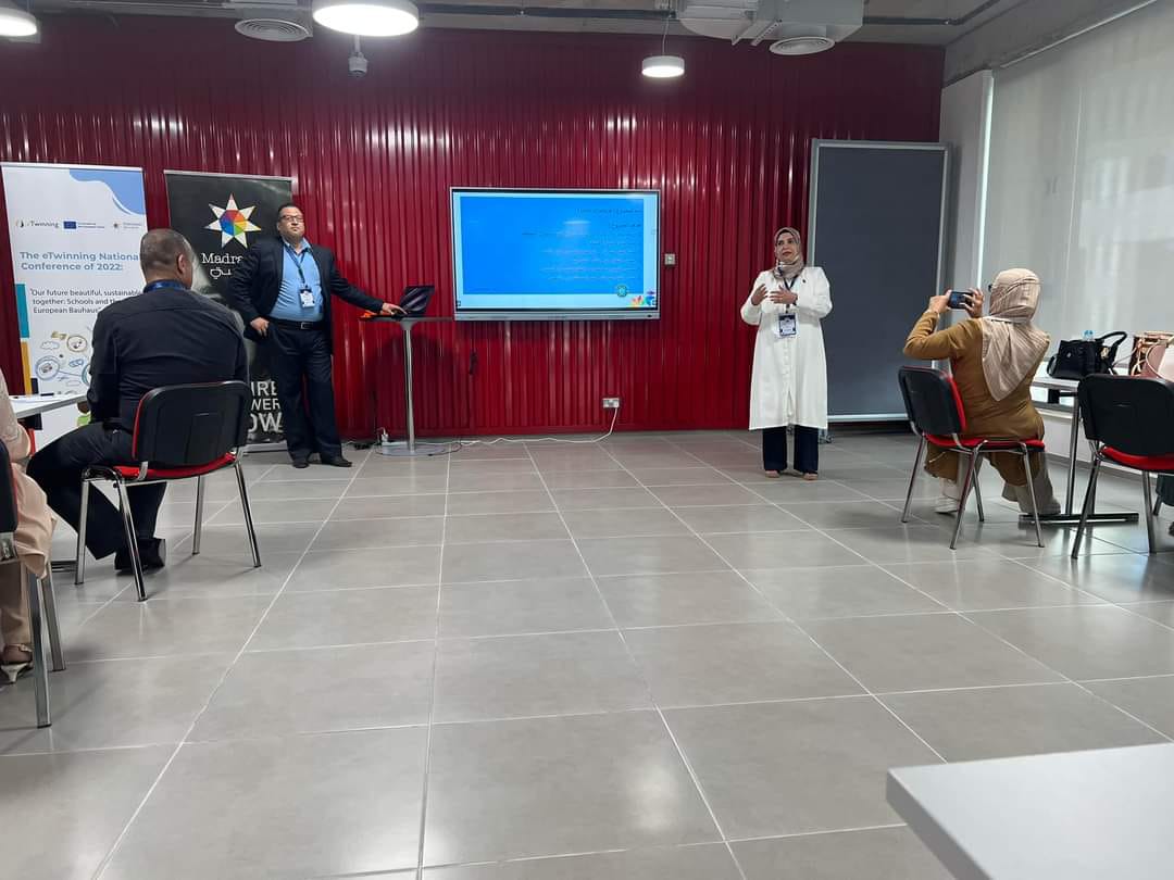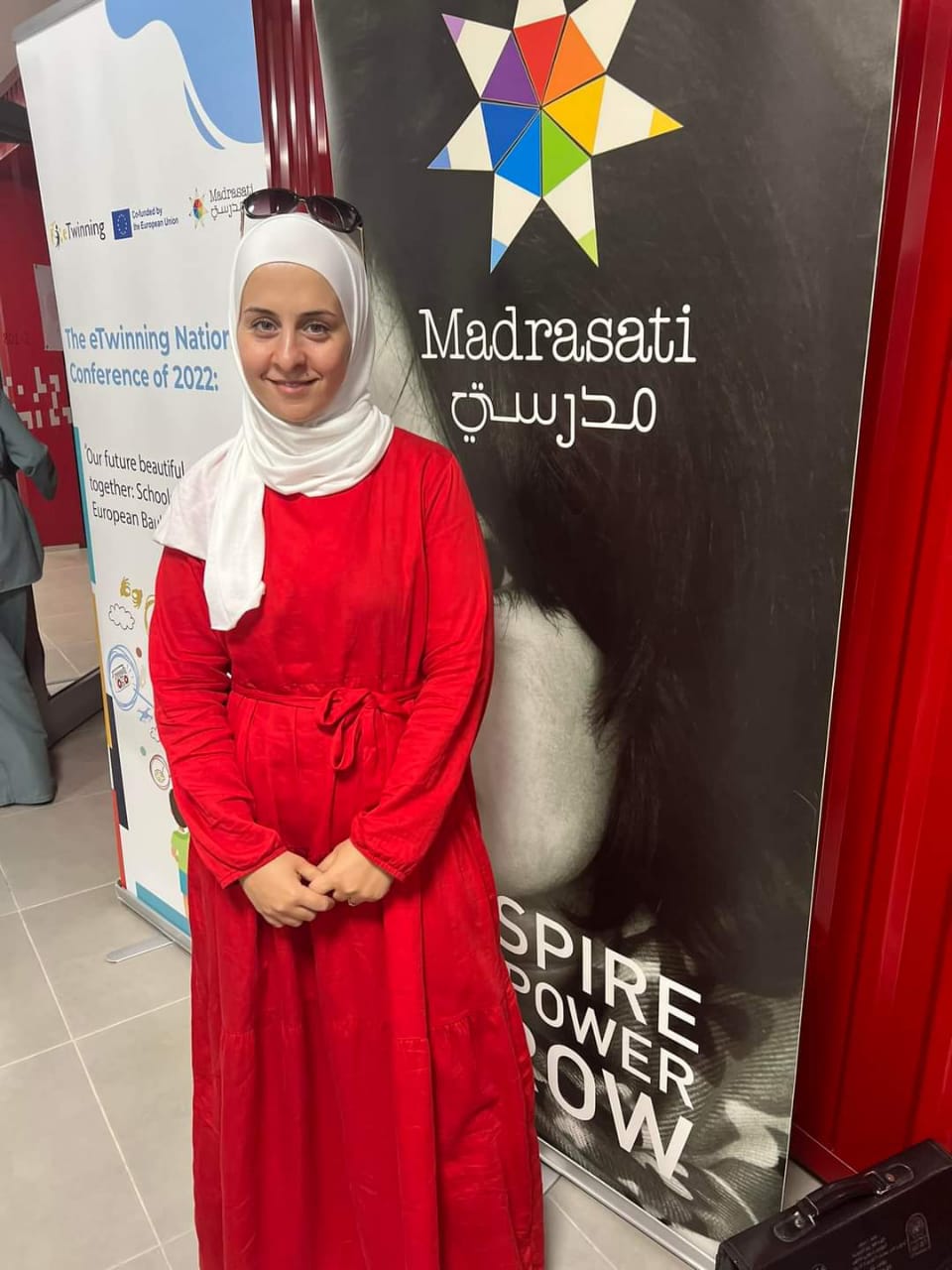 شاركت المعلمة ساجدة ابوزيد من مدرسة سمية بنت الخياط في مديرية لواء سحاب تشارك بمؤتمر التوأمة الإلكترونية المحلي 2022 The eTwinning National conference 2022 والذي نظمته مبادرة مدرستي، إحدى مبادرات جلالة الملكة رانيا العبدالله بالشراكة مع وزارة التربية والتعليم وبدعم من الإتحاد الأوروبي، اليوم الثلاثاء، مؤتمر التوأمة الإلكترونية 2022، بمشاركة 150 معلمًا ومعلمة من مختلف محافظات المملكة.