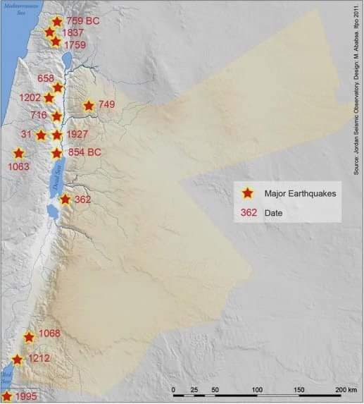 صحيح أن الاردن يقع فيه انهدامين كبيرين الاول هو انهدام الغور الاردني - وهو جزء من الانهدام العربي الافريقي الممتد من بحيرة فكتوريا في كينيا مرورا بخليج عدن والبحر الاحمر وخليج العقبة ووادي عربة والبحر الميت ونهر الاردن وبحيرة طبريا مرورا بلبنان وسوريا وحتى تركيا- بطول يقارب 7 الاف كيلومتر.