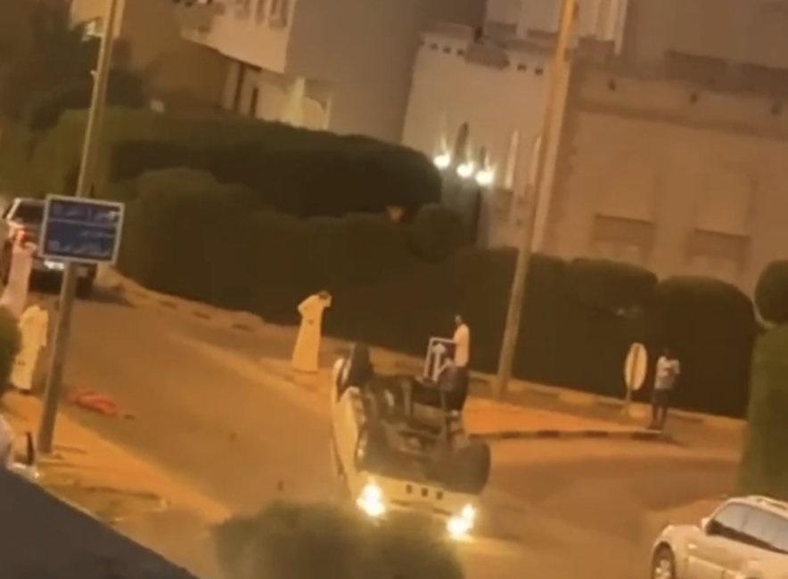 وانتشر مقطع مصور عبر مواقع التواصل الاجتماعي يظهر سيارة الشاب بعد حدوث الواقعة، وقد انقلبت وسط أحد الشوارع وقد تصاعد منها الدخان.