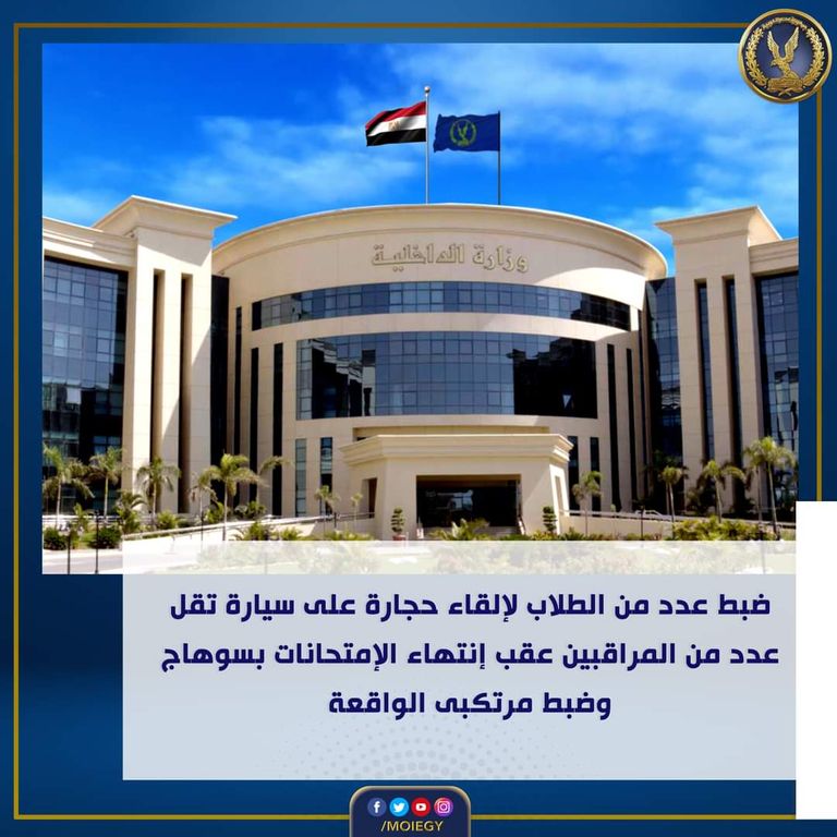 وأعلنت وزارة الداخلية المصرية، في بيان لها، أن الخدمات الأمنية المعينة بإحدى مدارس مركز شرطة جهينة في مديرية أمن سوهاج نجحت في ضبط الطلاب المتهمين.