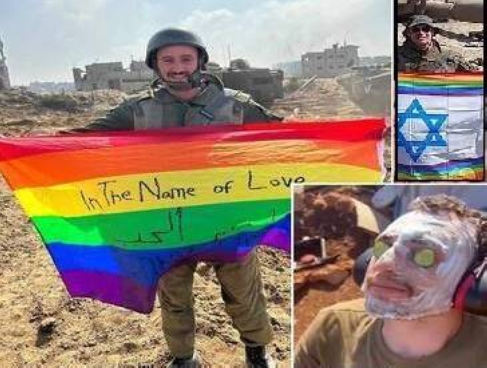 وقام جندي إسرائيلي شاذ مؤخرا بنشر صورته رافعا علم مجتمع الميم من أمام دبابة، معربا عن فخره بالوفاء بالعهد الذي قطعه على نفسه بجلب علم المثليين إلى المعركة ضد "حماس".