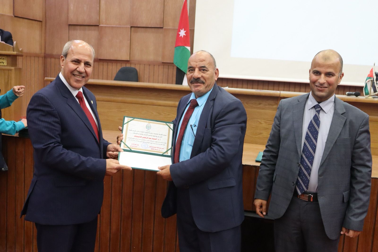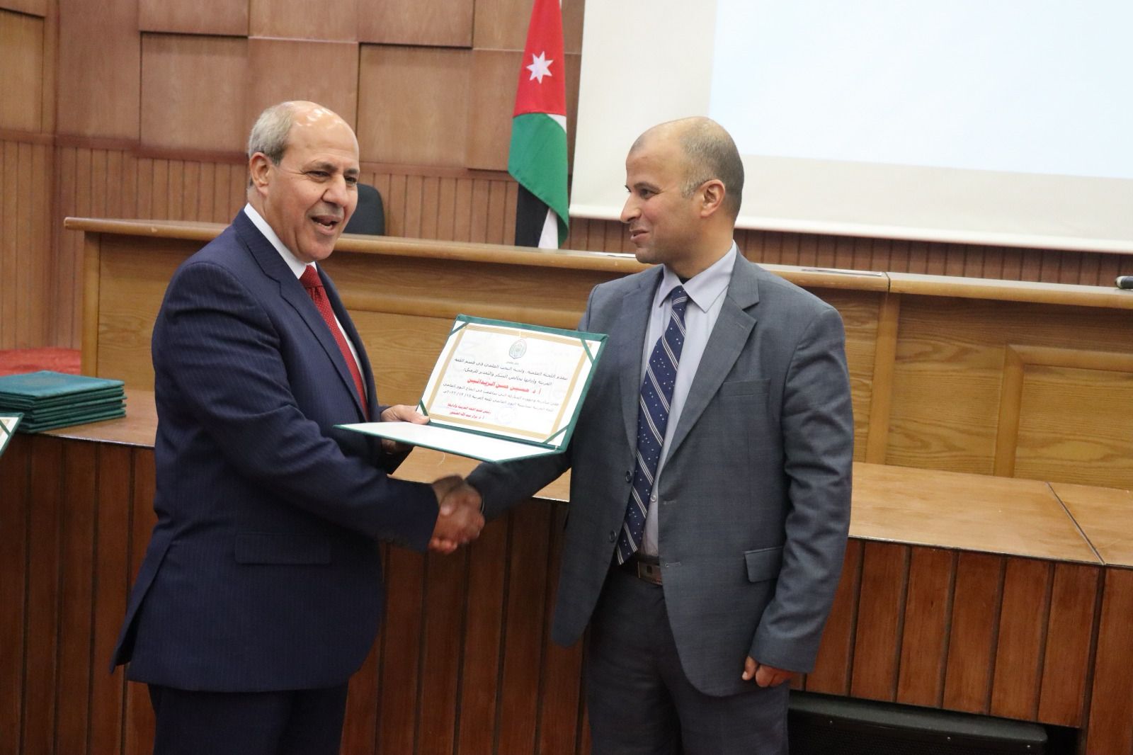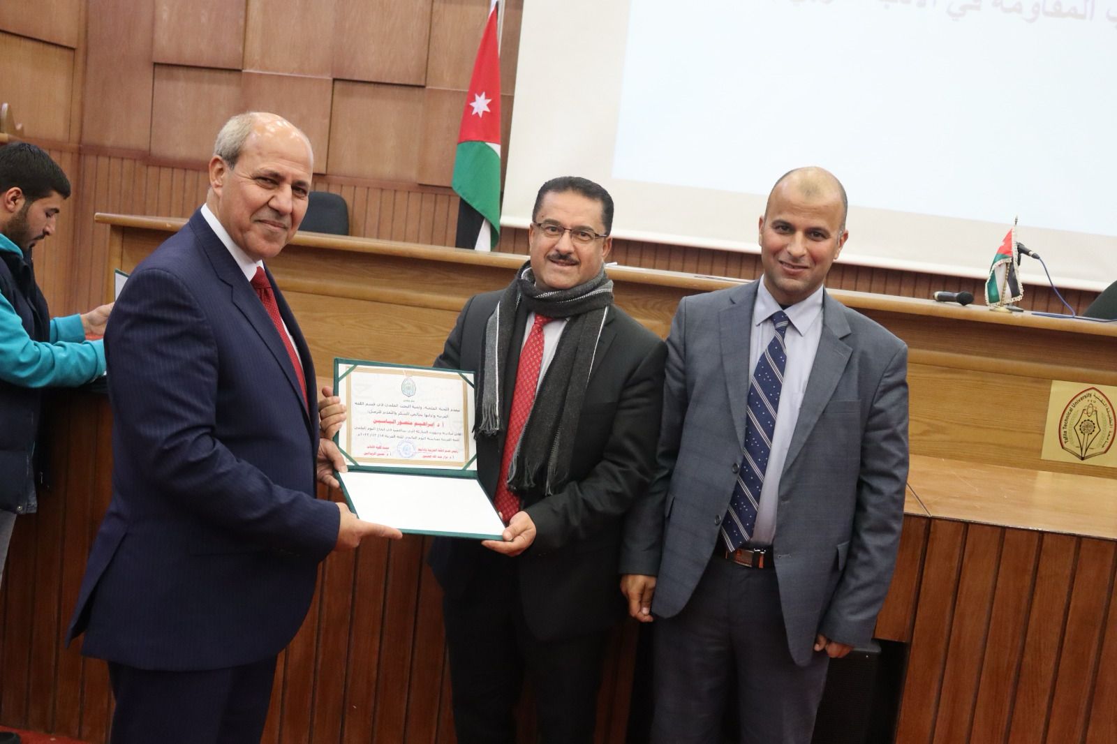 وفي ختام اليوم العلمي سلم رئيس الجامعة الدكتور المحاسنة، الشهادات والدروع التقديرية للمشاركين.