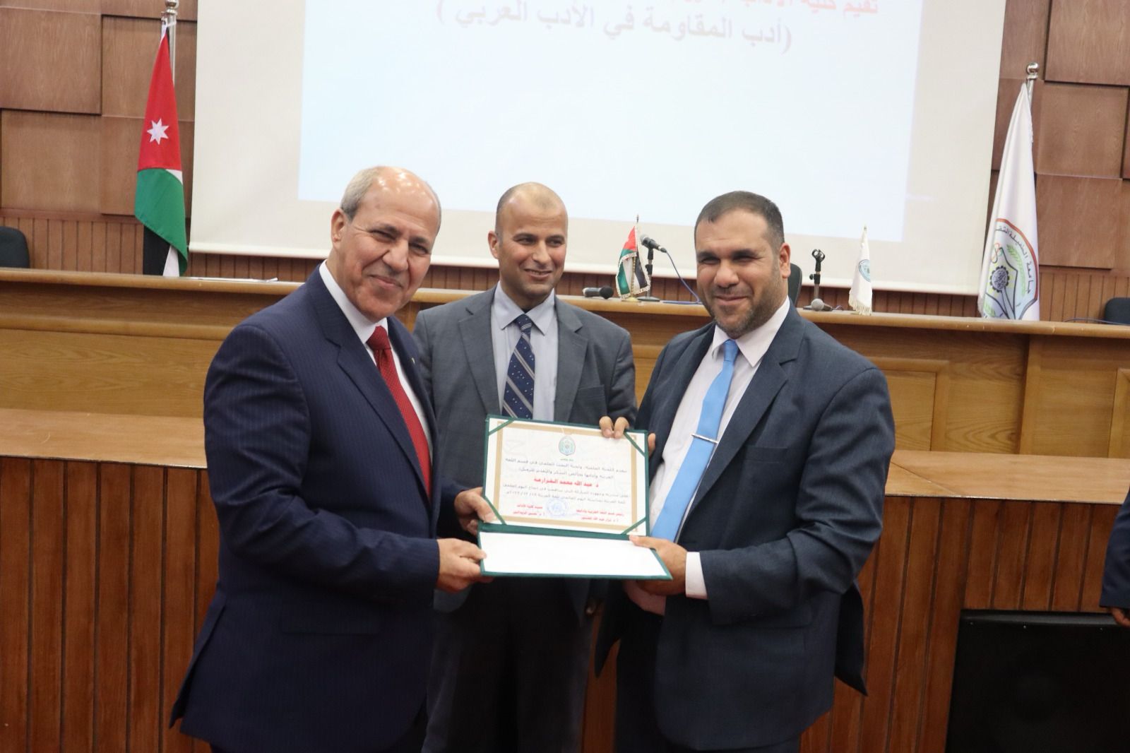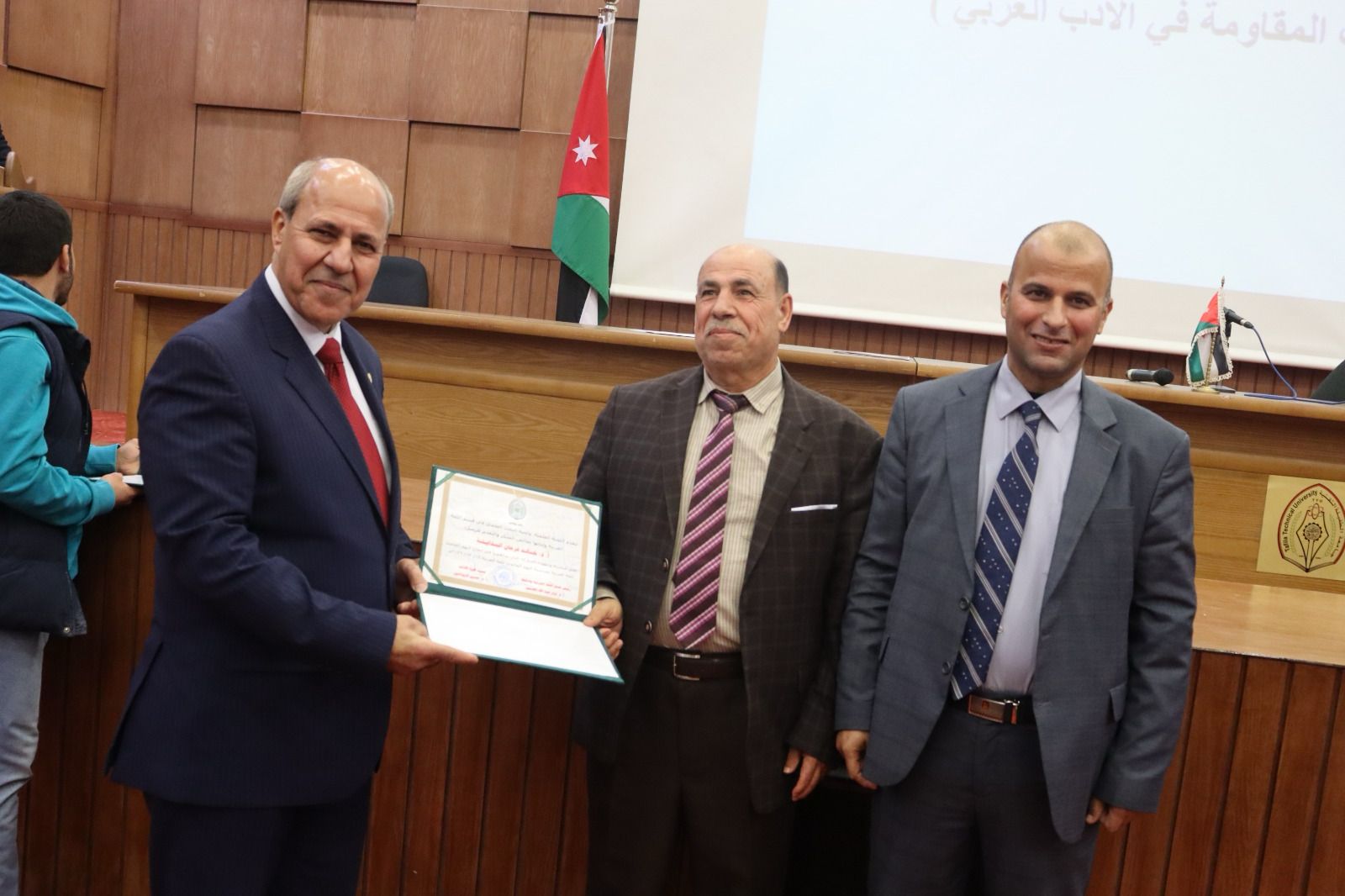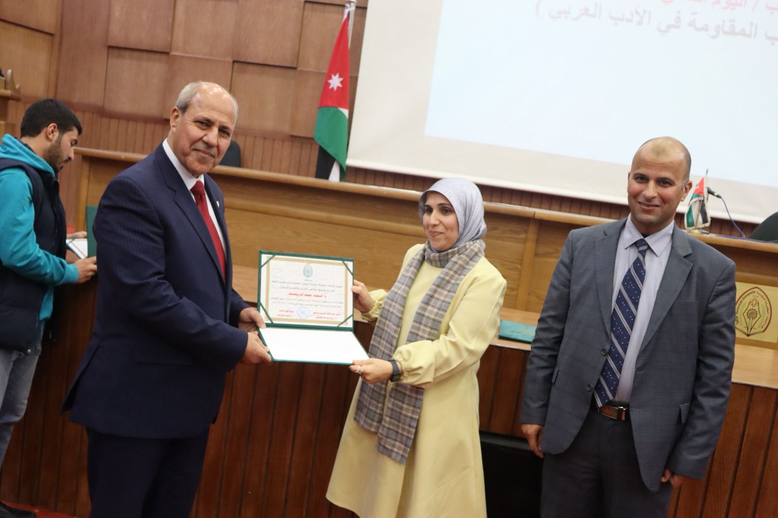 وفي ختام اليوم العلمي سلم رئيس الجامعة الدكتور المحاسنة، الشهادات والدروع التقديرية للمشاركين.