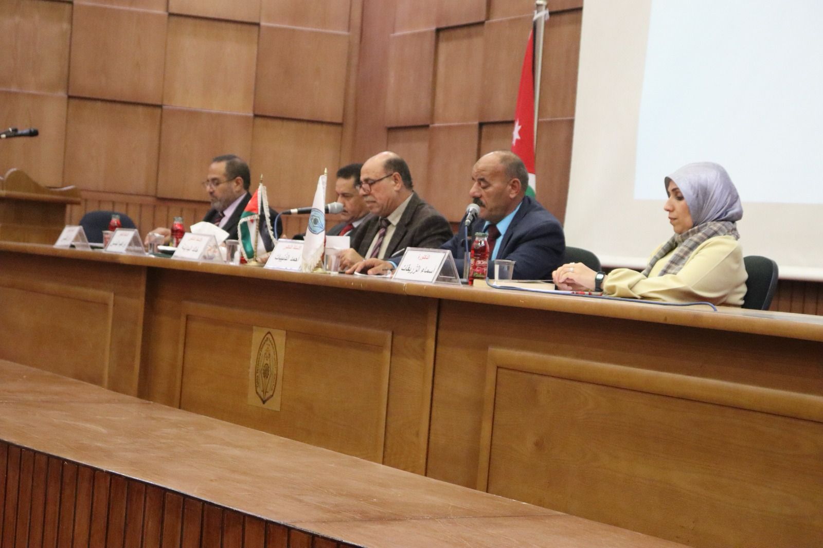 وترأس الجلسة الأولى التي شملت عدة محاور وقضايا ثقافية ولغوية الدكتور خالد البداينة مستهلاً الجلسة بورقته البحثية "آدب المقاومة" فيما تناولت دراسة الدكتور أحمد الذنيبات "قراءة في قصيدة رحيل الشنفرى للدكتور عبد الله القرارعة" أما دراسة الدكتور إبراهيم الياسين فقد تناول من خلالها "صورة الشهيد في شعر محمود درويش"، وتناول الدكتور نزار الضمور في دراسته" قراءة في كتاب منازل الأرجوان: الشهداء القادة في الإسلام للدكتور خالد الكركي" واختتمت الجلسة بدراسة" صورة القدس في الرواية/ ترانيم الغواية أنموذجاً " للدكتورة أسماء الزريقات.