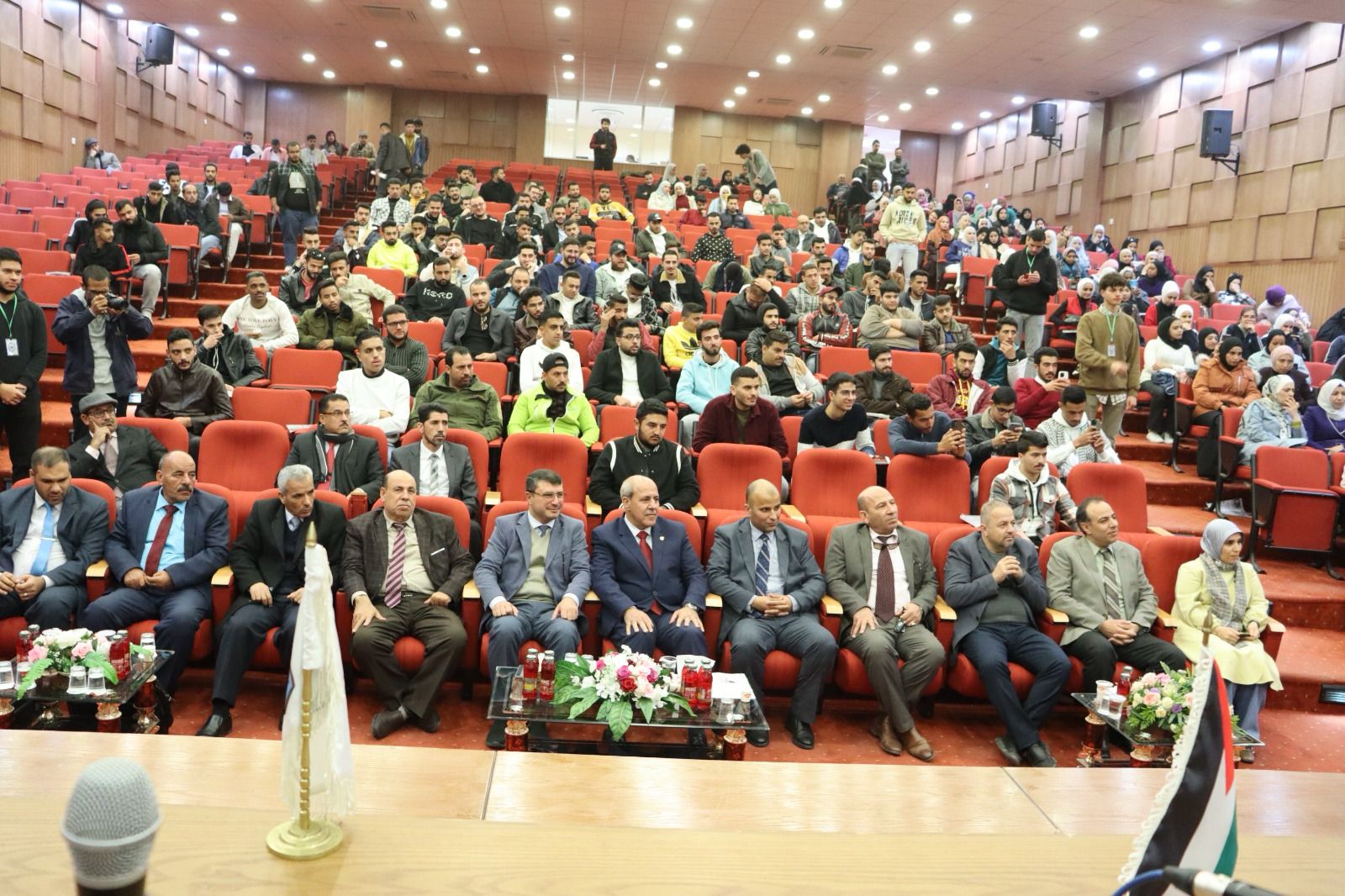 حضر الافتتاح نائب الرئيس للشؤون الأكاديمية الدكتور كمال خندقجي، وعميد كلية الآداب الدكتور حسين الزيدانيين، وجمع من الشعراء والكتاب، وحشد من طلبة الجامعة.