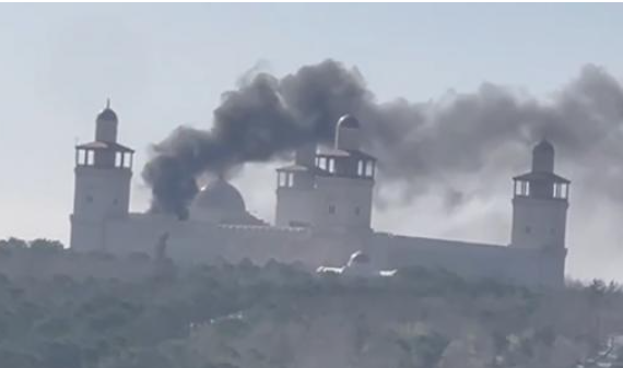 تداول ناشطون عبر مواقع التواصل الاجتماعي اليوم السبت مقطع فيديو يظهر أعمدة دخان متصاعدة من مسجد الملك الحسين في حدائق الحسين.