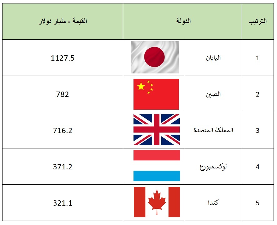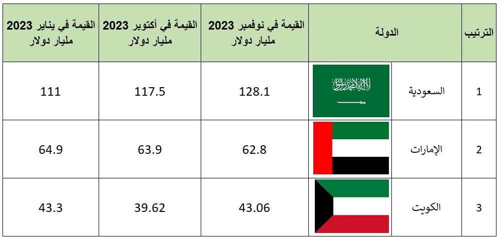 كبار الدول العربية المستثمرة في السندات الأمريكية (بيانات نوفمبر 2023).