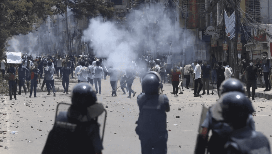 واشتبكت الشرطة والمتظاهرون في الشوارع وفي حرم الجامعات في دكا ومدن أخرى في جميع أنحاء البلاد الواقعة جنوب آسيا. وتحركت السلطات لمنع الاتصالات عبر الإنترنت من خلال حظر خدمات الهاتف المحمول والإنترنت. كما توقّفت بعض القنوات الإخبارية التلفزيونية عن البث، ولم يتم تحميل المواقع الإلكترونية لمعظم الصحف البنغلاديشية أو تحديثها.