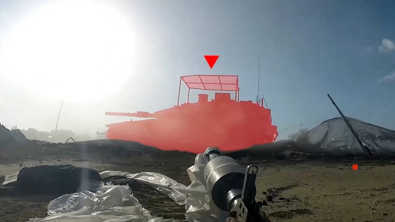 بثت كتائب القسام، الجناح العسكري لحركة المقاومة الإسلامية ( حماس )، اليوم الاثنين، مشاهد من استهداف مقاتليها دبابة وجنودا إسرائيليين بعبوة ناسفة في مخيم جباليا شمالي قطاع غزة.