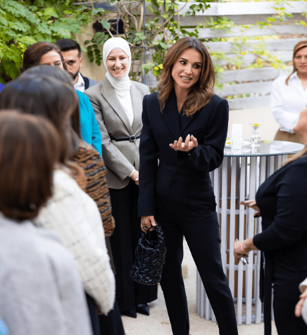 التقت الملكة رانيا العبدالله اليوم في دارة الياسمين باللويبدة سيدات من جمعية نادي صاحبات الأعمال والمهن، كما زارت جلالتها إحدى الشركات المستفيدة من برامج الجمعية وهي محمصة وأكاديمية بُنّي للقهوة.