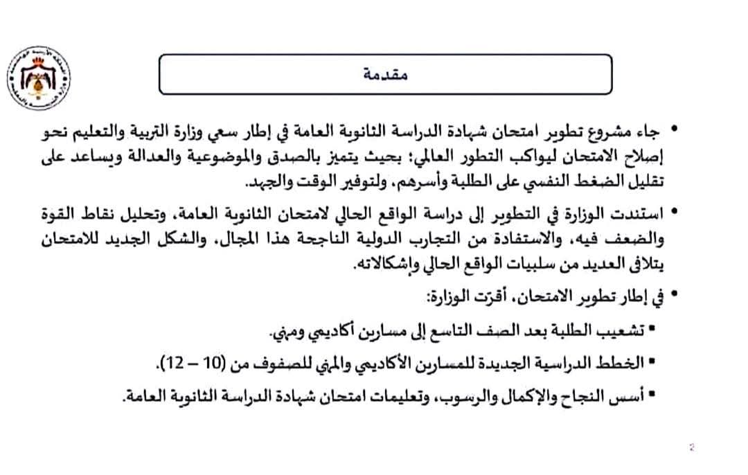 تالياً تفاصيل نظام الثانوية العامة الجديد (الحقول الدراسية وعدد السنوات والخطط الدراسية واحتساب معدل الثانوية العامة وأسس النجاح والرسوب وبنوك أسئلة الامتحانات) وباقي التفاصيل :