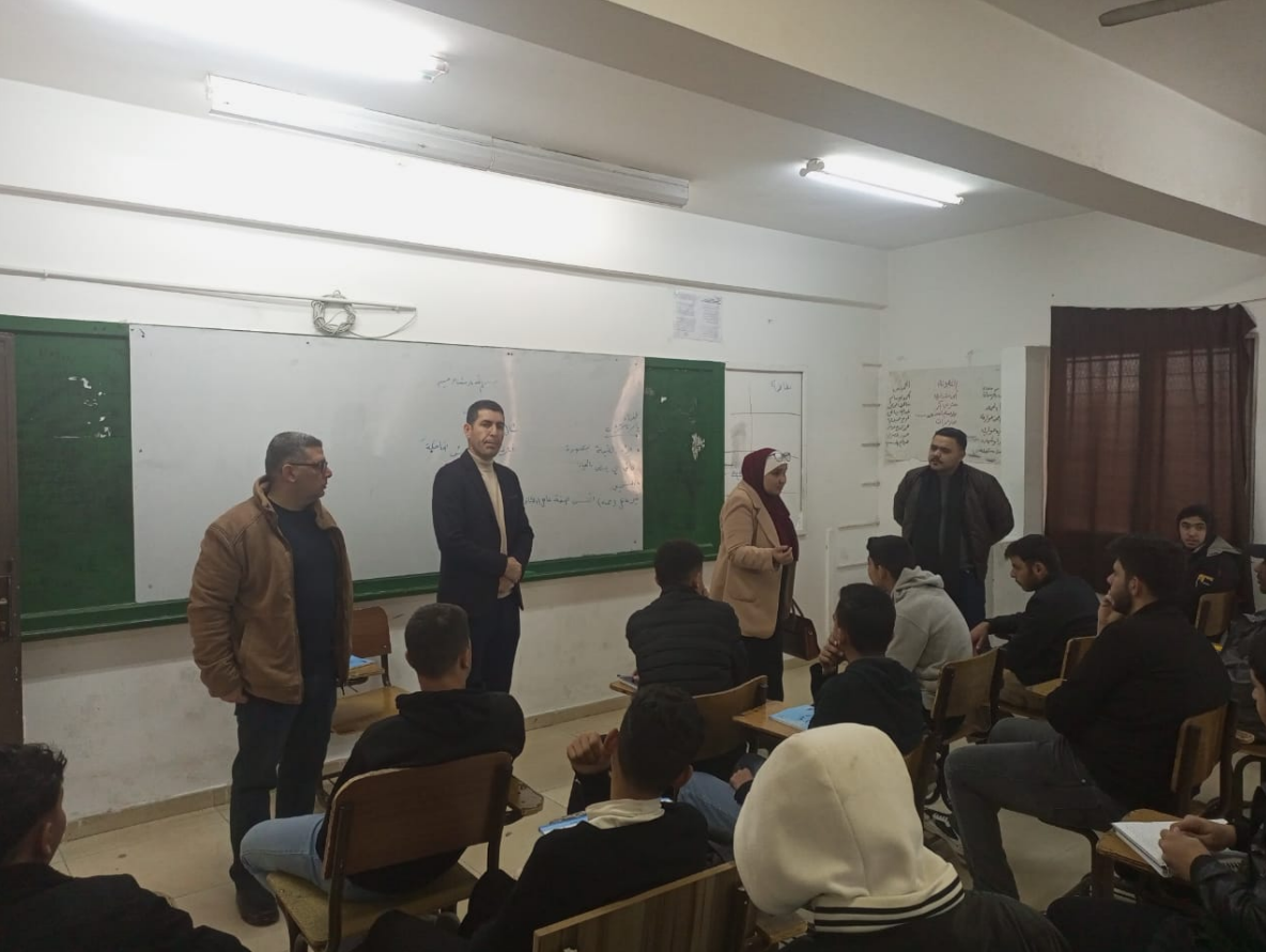 واستهلت البكار الزيارة بمشاركة الطلاب فعاليات الطابور الصباحي ورفع العلم وفقرات الإذاعة الدرسية،والقت كلمة على مسامع الطلبة مشددة على موضوع الحضور والغياب و أهمية الالتزام بالدوام المدرسي،موصية أعضاء الهيئة الإدارية والتدريسية على تطبيق أسس النجاح والرسوب،وإدخال الغياب ورصده بشكل يومي على منصة الوزارة.