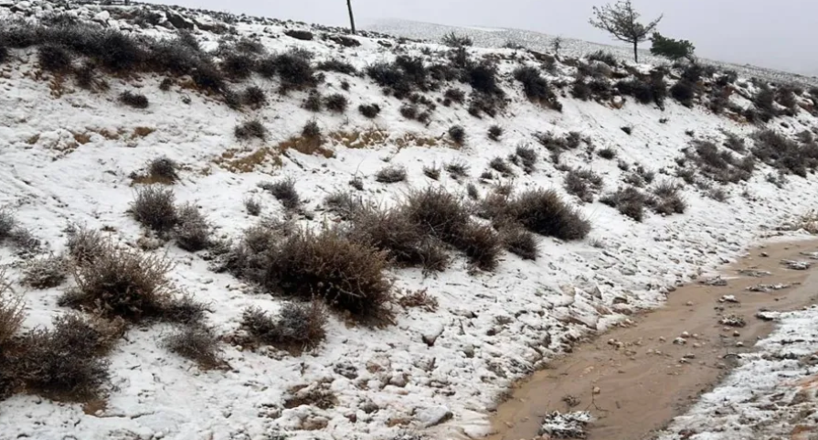 تساقط الثلوج على مرتفعات الشوبك وتحذيرات من مخاطر الطرق والضباب