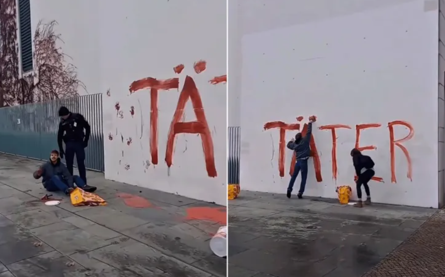 قام ناشطون مؤيدون لفلسطين من مجموعة سلمية ضد الإبادة، اليوم الثلاثاء، بكتابة جناة بالطلاء على مبنى المستشارية الألمانية في برلين احتجاجا على استئناف الحكومة توريد الأسلحة لإسرائيل.وأوضحت الشرطة في العاصمة الألمانية أن رجلا (26 عاما) وامرأة (27 عاما) قاما بكتابة كلمة جناة بالطلاء الأحمر على الجدار...