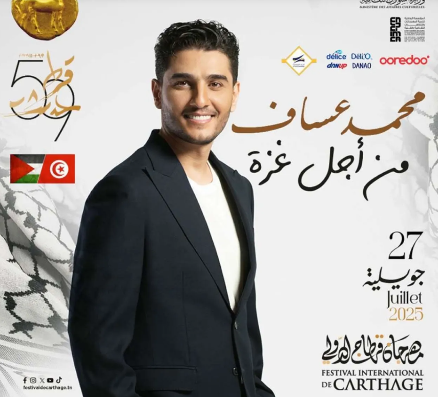 في إطار الدورة التاسعة والخمسين من مهرجان قرطاج الدولي، يستعد النجم الفلسطيني محمد عساف لإحياء حفل ضخم يوم 27 تموز - يوليو 2025، تحت شعار من أجل غزة، في سهرة يُتوقّع أن تكون مميزة من حيث الحضور والمضمون الإنساني والفني.يأتي هذا الحفل في ظل تضامن واسع مع الشعب الفلسطيني، حيث يرفع عساف، بصوته...