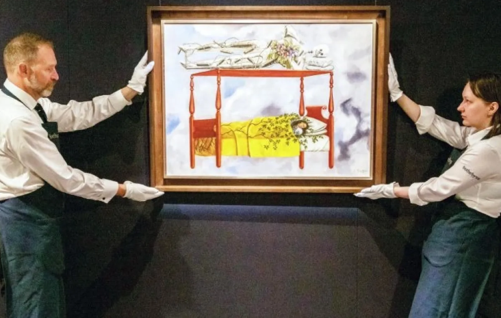 بيعت لوحة ذاتية مؤثرة تعود لعام 1940 للفنانة التشكيلية المكسيكية فريدا كاهلو بمبلغ 54.7 مليون دولار، مما يجعلها أغلى عمل لفنانة يباع في مزاد علني.اللوحة التي تصور كاهلو نائمة في سرير، وعنوانها الحلم (السرير) (El sueño- La cama)، تجاوزت الرقم القياسي الذي كانت تحمله لوحة جورجيا أوكيف عشب جيمسون/...