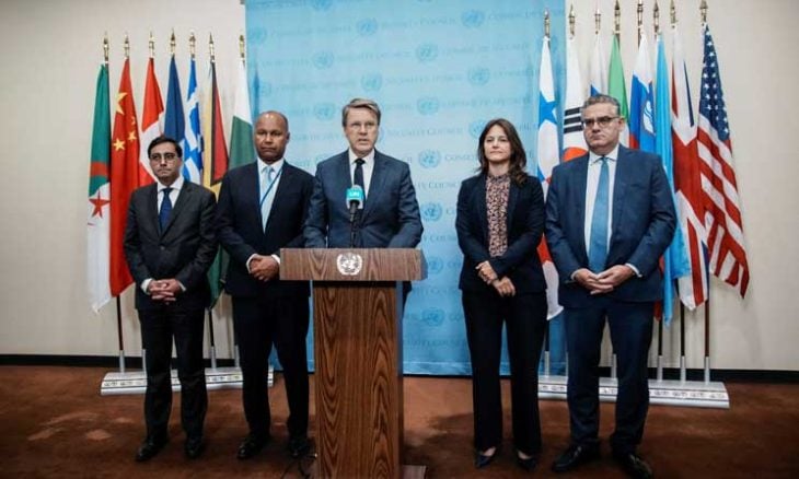 ألقى الممثل الدائم لسلوفينيا، بيانا أما قاعة مجلس الأمن الدولي نيابةً عن المملكة المتحدة وفرنسا والدنمارك واليونان قال فيه: “نحن، المملكة المتحدة والدنمارك وفرنسا واليونان وسلوفينيا، دعونا اليوم إلى عقد اجتماع عاجل لمجلس الأمن بشأن الوضع في غزة. نُدين قرار حكومة إسرائيل بتوسيع عملياتها العسكرية...