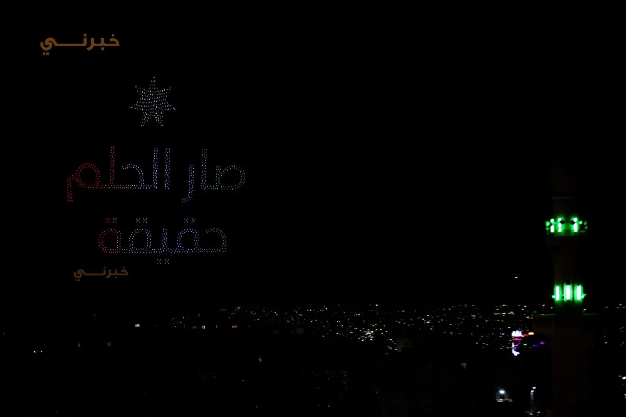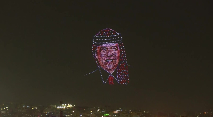 حلقت المئات من طائرات الدرون، مساء الثلاثاء، في سماء العاصمة عمّان، مؤدية عروضا ضوئية استعراضية، وذلك بمناسبة احتفالات المملكة بعيد الجلوس الملكي، ويوم الجيش، وتأهل المنتخب الوطني لكرة القدم إلى نهائيات كأس العالم.وجسّدت العروض الاستعراضية صورة جلالة الملك عبدالله الثاني وتلاها صورة سمو الأمير...