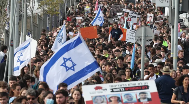 تجمع مئات الإسرائيليين في مظاهرات واسعة بـتل أبيب، للمطالبة بوقف الحرب في غزة وإطلاق سراح جميع الرهائن.وقالت هيئة البث العبرية إن هذه التحركات تأتي للضغط على الحكومة الإسرائيلية التي تخطط لتوسيع عملياتها في غزة.وشهدت المظاهرات انتشارا أمنيا مكثفا وصدامات واستخداما للقوة من الشرطة الإسرائيلية...