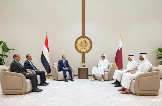 استقبل أمير دولة قطر الشيخ تميم بن حمد آل ثاني، اليوم الخميس، الرئيس المصري عبد الفتاح السيسي، لدى وصوله العاصمة الدوحة في زيارة عمل، حيث استعرضا آخر التطورات بالمنطقة في ظل استمرار الهجمات الإيرانية.وقال الديوان الأميري القطري، في بيان، إن الشيخ تميم بحث مع السيسي، في اجتماع عُقد بالصالة...